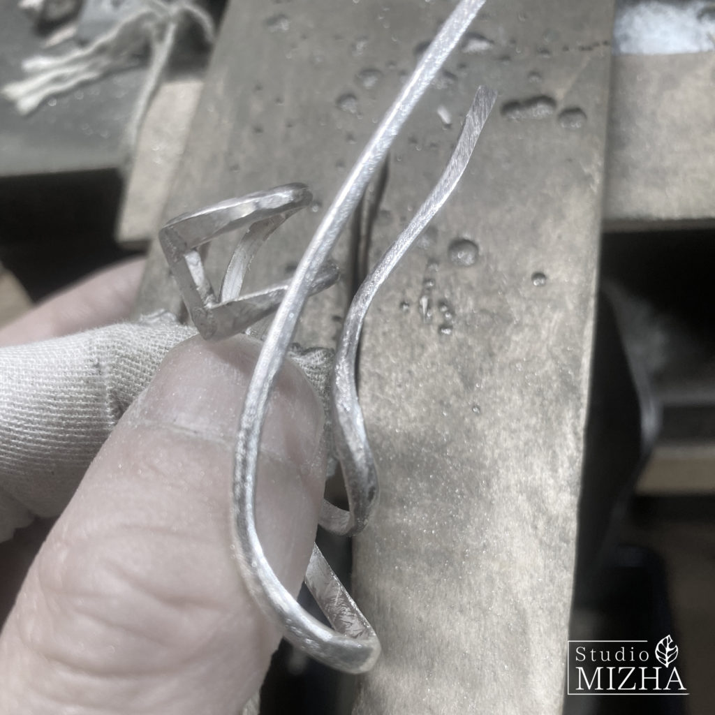 ・『草あそび』は、一般的な鋳造品とは異なり、小さなパーツを複雑に組み合わせて生まれる繊細な作品となっております。そのため、細い曲線や凹凸が多く、非常にデリケートに創られております。ご着用の際は、家事や激しい動作を伴う作業などは、引っ掛かりや破損の恐れがございますので、お外しいただくことをお勧めいたします。