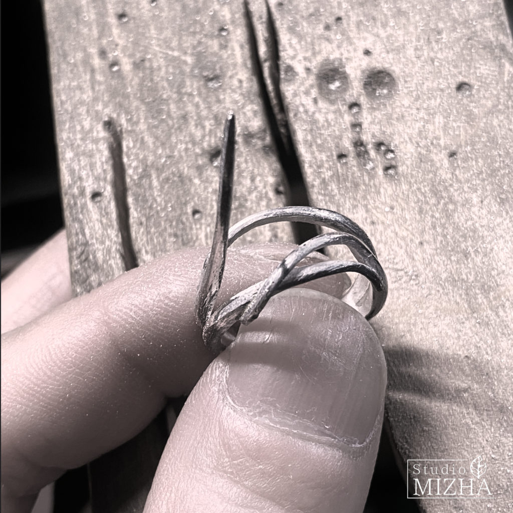 ・『草あそび』は、一般的な鋳造品とは異なり、小さなパーツを複雑に組み合わせて生まれる繊細な作品となっております。そのため、細い曲線や凹凸が多く、非常にデリケートに創られております。ご着用の際は、家事や激しい動作を伴う作業などは、引っ掛かりや破損の恐れがございますので、お外しいただくことをお勧めいたします。