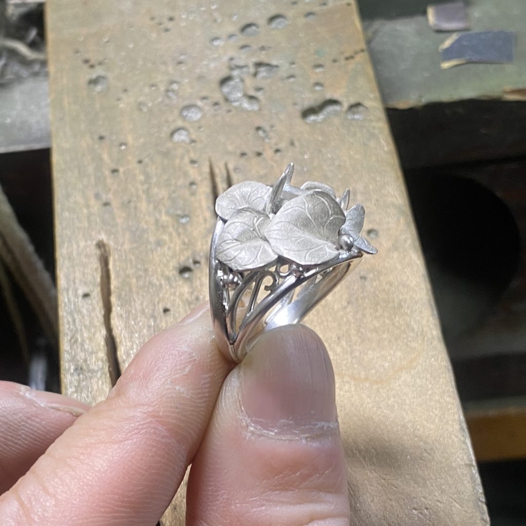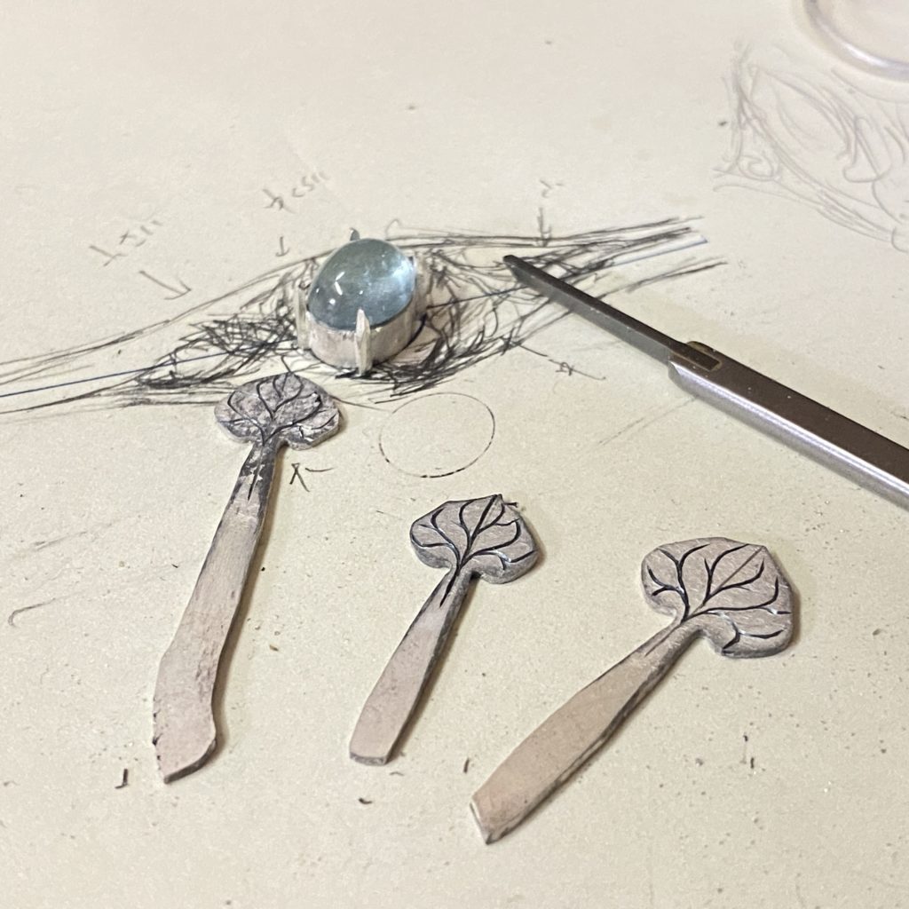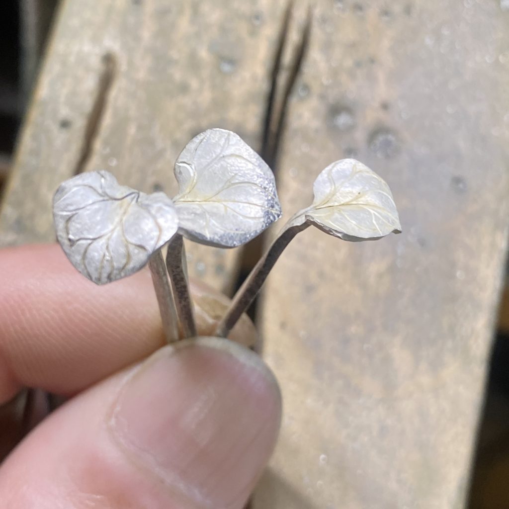 一枚一枚、銀の板から切り出し、金槌やタガネで成形した銀の葉は、野の草たちがそうであるように、全く同じカタチがの存在せず、それぞれが個性的です。