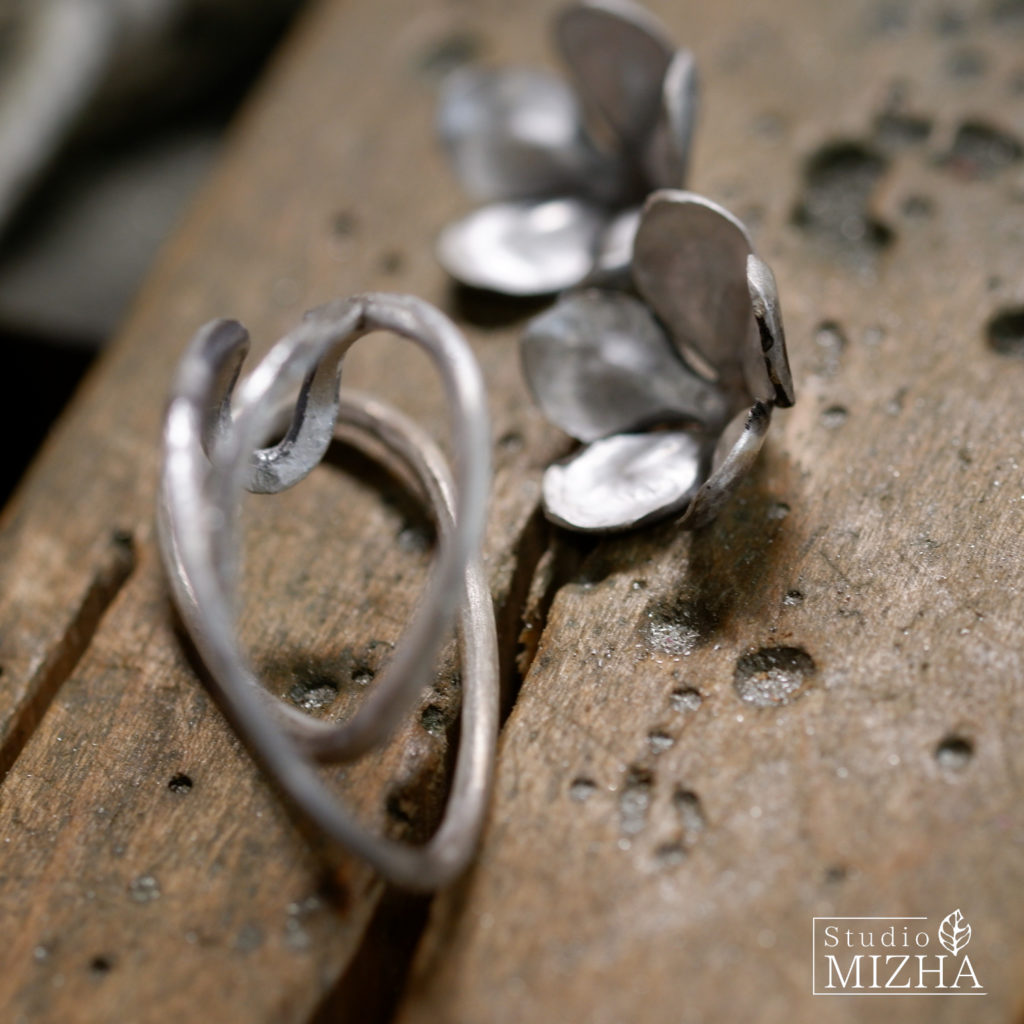 ・『草あそび』は、一般的な鋳造品とは異なり、小さなパーツを複雑に組み合わせて生まれる繊細な作品となっております。そのため、細い曲線や凹凸が多く、非常にデリケートに創られております。ご着用の際は、家事や激しい動作を伴う作業などは、引っ掛かりや破損の恐れがございますので、お外しいただくことをお勧めいたします。